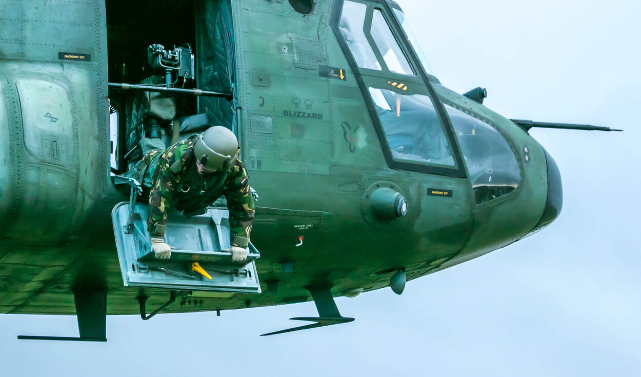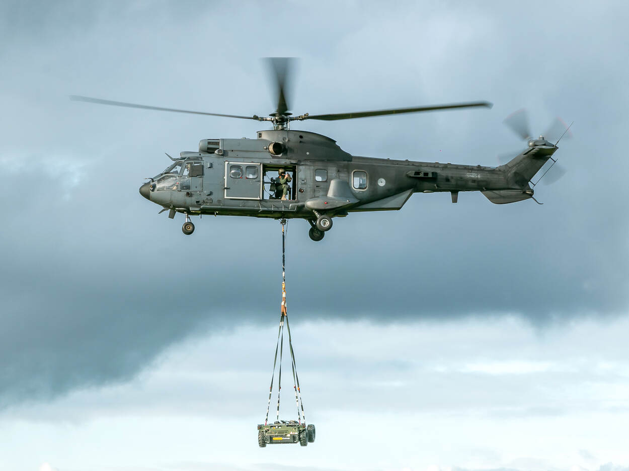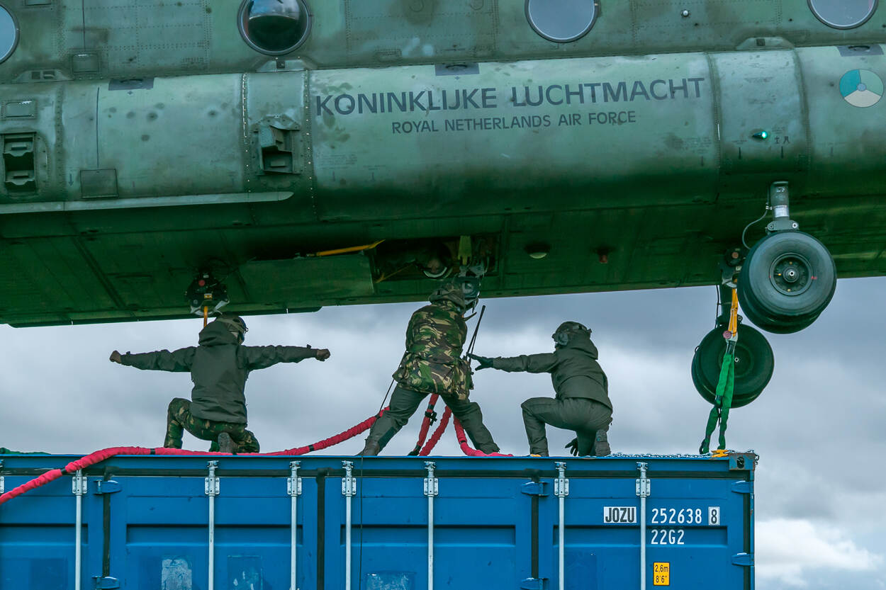 Eind november werkten 11 Luchtmobiele Brigade en het Defensie helikopter Commando samen in de oefening Slingery. Die vond plaats vanaf het Militair Luchtvaartterrein Deelen en op de Ginkelse en Eder Heide. Het 298 Squadron leverde 2 Chinooks en het 300 Squadron 1 Cougar. De helikopters kregen uit Duitsland ondersteuning van 2 NH90’s en ‘riggers’ die hun Nederlandse collega’s van 11 luchtmobiel ondersteunden. Die laatste verplaatsten ladingen voornamelijk met netten. Op de Ginkelse Heide was ook een Forward Refuelling Point ingericht met is 42.000 liter brandstof, waar maximaal 4 helikopters tegelijkertijd konden tanken. Foto’s: Ludo Mennes
