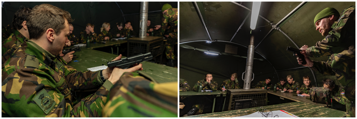 Maar voordat je officier kunt worden, moet je eerst transformeren naar militair. Het eerste blok van 8 weken heet dan ook heel toepasselijk ‘Van burger naar militair’. Het bestaat vooral uit de zogenaamde ‘groene lessen’: een aantal integratiedagen, een introductiebivak en een oefening te velde waarin de cadet het geleerde toepast in de praktijk. In die weken leren de aspirant-officieren alle militaire basisvaardigheden (MBV) in luchtmachtcontext. Verder is er veel aandacht voor het individu. Wie ben je en wat breng je mee? En welke opleidingsvormen en leeromgeving passen het beste bij jou? Dit en meer zijn zaken die de cadet samen met de instructeur analyseert en oppakt. In het tweede blok ‘Van militair naar luchtmachtofficier’ komen in 12 weken de belangrijkste faculteitsvakken aan bod, zoals militair recht, leiderschap, ethiek en besturing binnen Defensie. Het hele operationele planningsproces vanaf een ‘Artikel 100-brief’ (het politiek bevel tot militaire inzet) tot aan de start van de missie, loopt als een rode draad door de lessen heen. Dijkstra: “De hele periode werk je toe naar een eindoefening. Alle lessen dragen daaraan bij.”