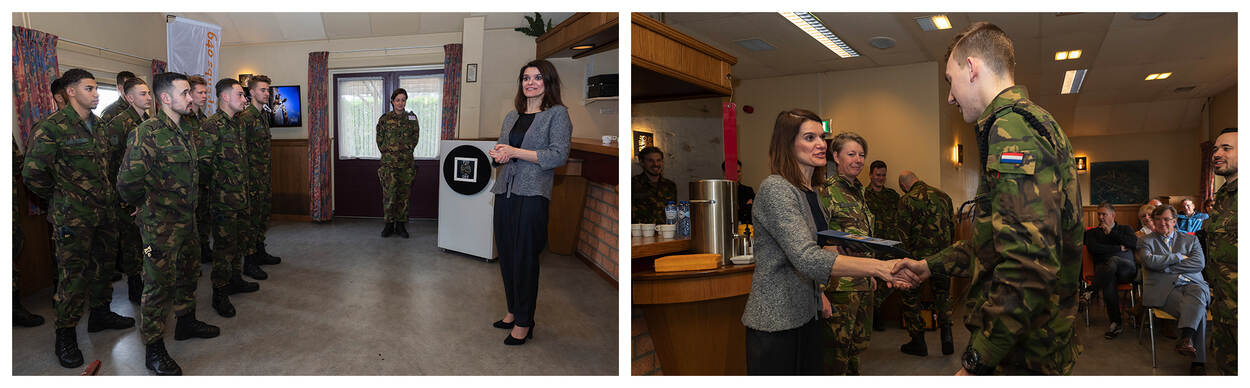 Staatssecretaris van Defensie Barbara Visser was op 12 februari te gast op de Vliegbasis Volkel. Daar reikte ze onder andere certificaten uit aan de 11 geslaagde kandidaten van de eerste lichting Proeftuin Grondverdediging.