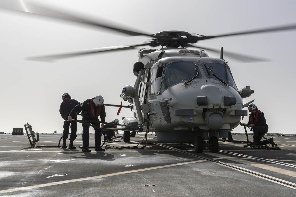 De NH90-boordhelikopter vaart mee op Zr.Ms. De Ruyter voor missie Agenor, de militaire tak van missie EMASOH: European-led Maritime Awareness in the Strait of Hormuz. De Nederlandse aanwezigheid moet spanningen in het gebied verminderen en vrije doorvaart bevorderen. De helikopter helpt mee aan beeldopbouw in de Straat van Hormuz en aangrenzende zeeën. De NH90 vormt vanuit de lucht een extra paar ogen omdat het verder kan kijken dan de radar van het schip.