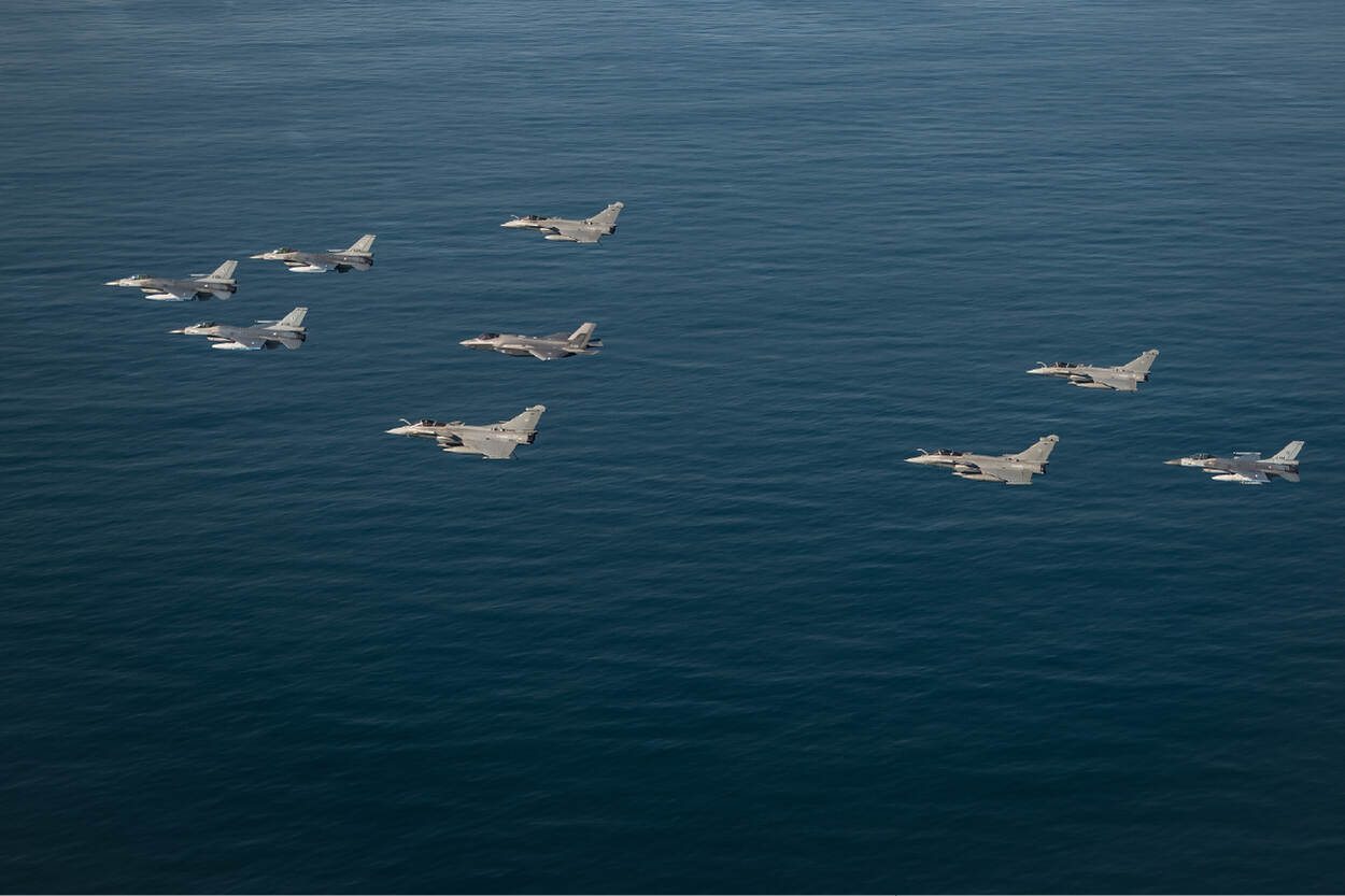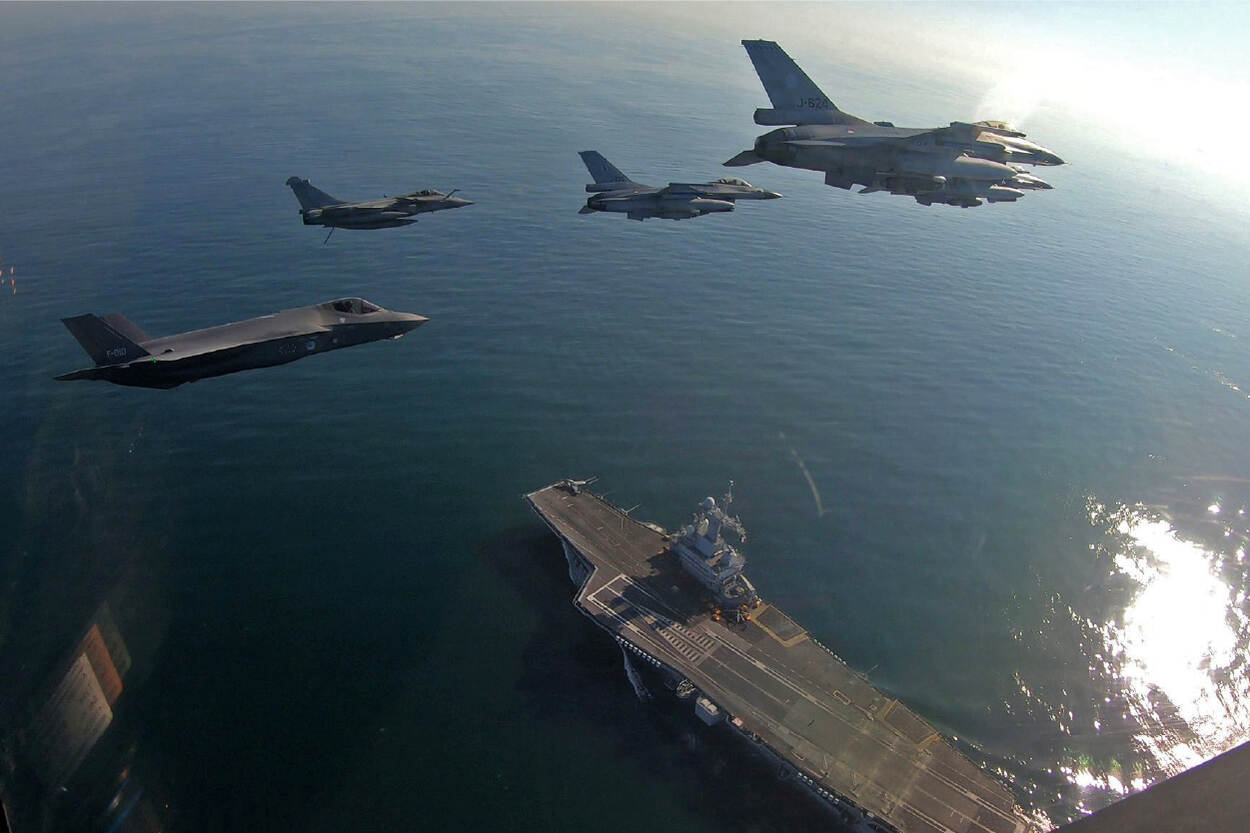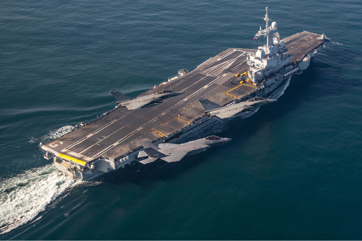 Tijdens de oefening Frisian Resiliance, van 23 tot en met 27 maart, voerden Nederlandse F-16’s en een F-35 zowel offensieve als defensieve missies uit. Niet alleen op de vliegtuigen maar ook op het vliegkampschip. Luchtgevechtsleiders van het Air Operations Control Station Nieuw Milligen ondersteunden de Nederlanders daarbij. Voor elke missie werd een ‘agressor’ aangewezen, Frans of Nederlands, met een aanzienlijke gesimuleerde dreiging. Aan de andere deelnemers de taak die door goed gezamenlijk optreden te overwinnen. Deze samenwerking is een mooi voorbeeld van de veerkracht (resiliance) na het niet doorgaan van Frisian Flag. Foto’s: adjudant Arnoud Schoor en Marine Nationale.