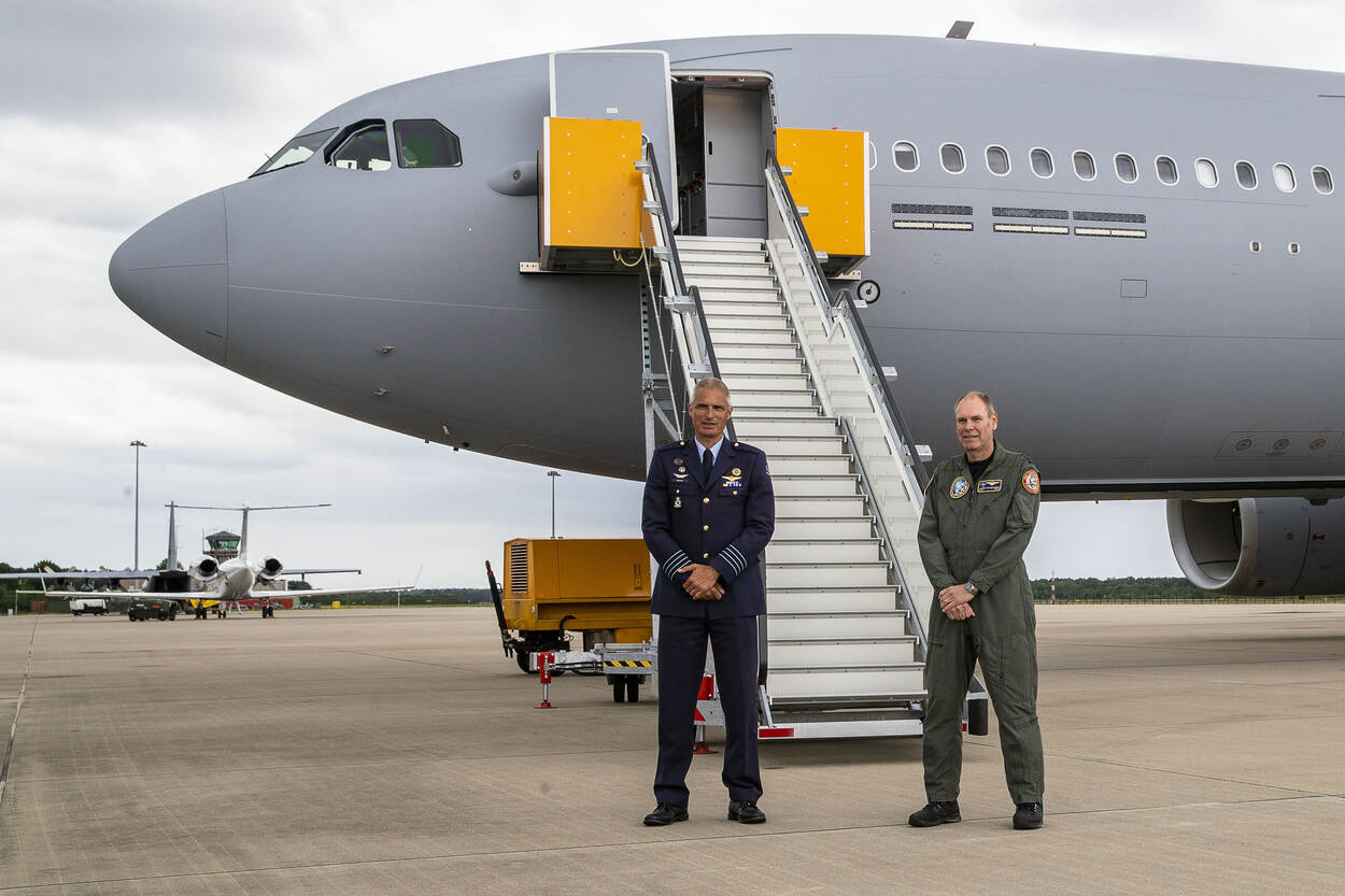 Een historische dag op Vliegbasis Eindhoven: een Nederlandse aircrew bracht dinsdag 30 juni de eerste A330 Multi Role Tanker Transport (MRTT) thuis. Door de unieke samenwerking binnen de NAVO wordt Vliegbasis Eindhoven de thuishaven van de nieuwe vloot. Over zo’n 4 jaar bestaat die uit 8 toestellen, waarvan 5 op Eindhoven worden gestationeerd. Hiermee wordt de faciliterende rol van ‘Eindhoven’ flink uitgebreid. Hoe dat zit? Commandanten Vliegbasis Eindhoven en Multinational MRTT Unit (MMU) leggen uit.
