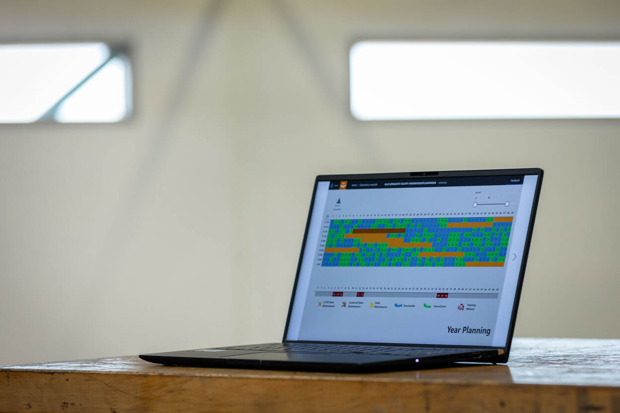 Mathijs: “Voorheen maakten 3 partijen handmatig de vlucht- en onderhoudsplanning . Allereerst het operationele squadron. Dat moet op het juiste moment voldoende vlieguren maken, maar bewaakt ook de resturen op de vliegtuigen. Vervolgens schoof de planning door naar de onderhoudsafdeling. Die zorgde dat ruimte en mensen beschikbaar waren voor het sleutelen aan de kist op momenten dat er niet werd gevlogen. De afdeling Programma Management tot slot, zorgde voor afstemming tussen de 2 andere partijen en hield het overzicht.”