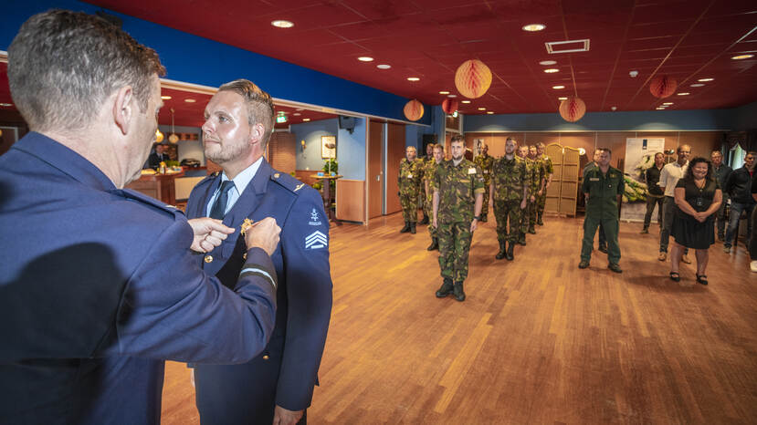 Op 16 juli kreeg sergeant 1 Rob Kardux, onderhoudsmonteur radarsystemen verkeersbeveiliging bij het 982 Squadron, de Waarderingsspeld Koninklijke Luchtmacht uitgereikt voor zijn reddingsactie op 9 mei 2018.
