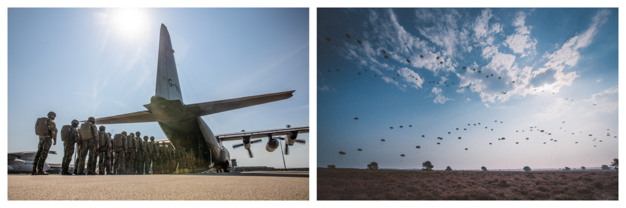 Dankzij de oefening houdt Nederland belangrijke inzetmiddelen paraat. Airborne optreden bestaat al sinds de Tweede Wereldoorlog en is in de decennia erna continu verbeterd. Het geldt nog altijd als de snelste manier om veel militairen en middelen ter plaatse te brengen. Foto’s: Defensie
