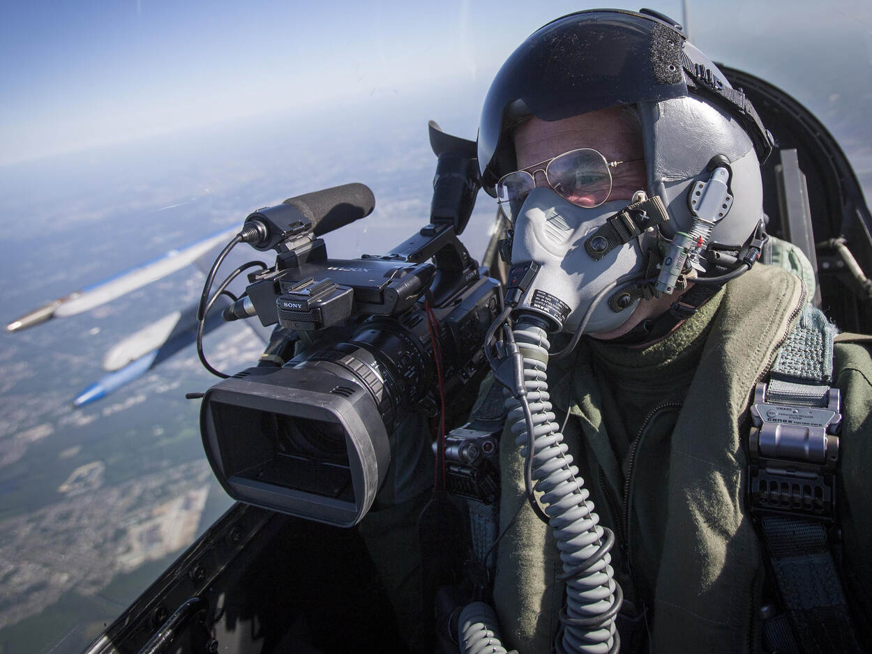 Naast Arnoud is er ook adjudant Eva Klijn. Zij is halverwege de 11 maanden durende opleiding en ze moet haar brevet dus nog verdienen. Zodra dat gebeurt, mag ook Eva zich officieel Aerial Photographer noemen en draagt ze de bijpassende wing op haar overall. Tot die tijd is Arnoud de enige echte luchtfotograaf. Hij zit sinds 2000 op die functie. Inmiddels klokte hij ruim 900 vlieguren en hij heeft een ‘ton’ aan ervaring. Dat is geen overbodige luxe, want luchtfotografie houdt veel meer in dan je kunt bedenken. Vaak zijn bij air-to-air opnamen manoeuvres gewenst die vliegers niet dagelijks maken of waarbij toestellen in formatie moeten vliegen. Luchtfotografen moeten daarom naast een bekwaam fotograaf ook veel van vliegen afweten.