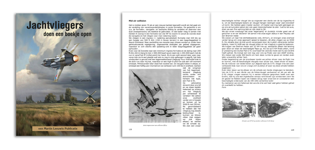 ‘Jachtvliegers doen een boekje open’ geeft inzicht in achtergronden van het vliegen met gevechtsvliegtuigen en alle zaken die fout (kunnen) gaan. Het boek is rijk geïllustreerd met foto’s, schilderijen en digitale kunst. De uitgave is samengesteld door Martin Leeuwis en telt 245 pagina’s. Het werk kost € 17,95 en is uitgegeven door Martin Leeuwis Publicatie. ISBN: 9789490008222.
