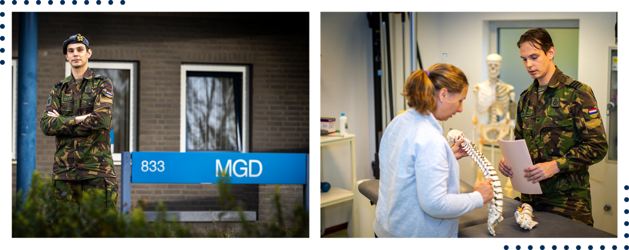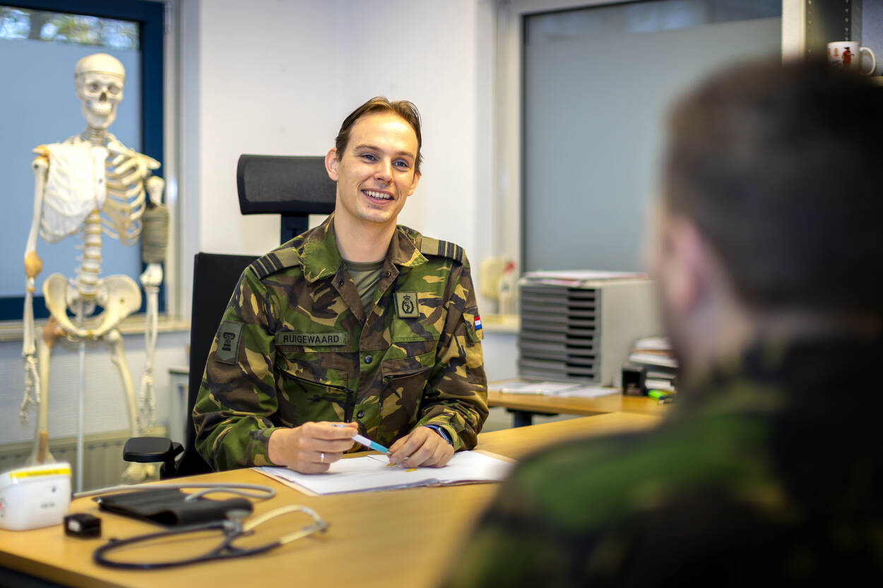 Onze zorgverlening gaat verder dan zieken beter maken. Je bent ook bezig met hoe je militairen fit en inzetbaar houdt. Daarvoor werk je samen met onder meer bedrijfsmaatschappelijk werkers, geestelijk verzorgers, fysiotherapeuten en Bureau Sport. Ons werk biedt dus veel afwisseling en bestaat zeker niet alleen maar uit spreekuren.”