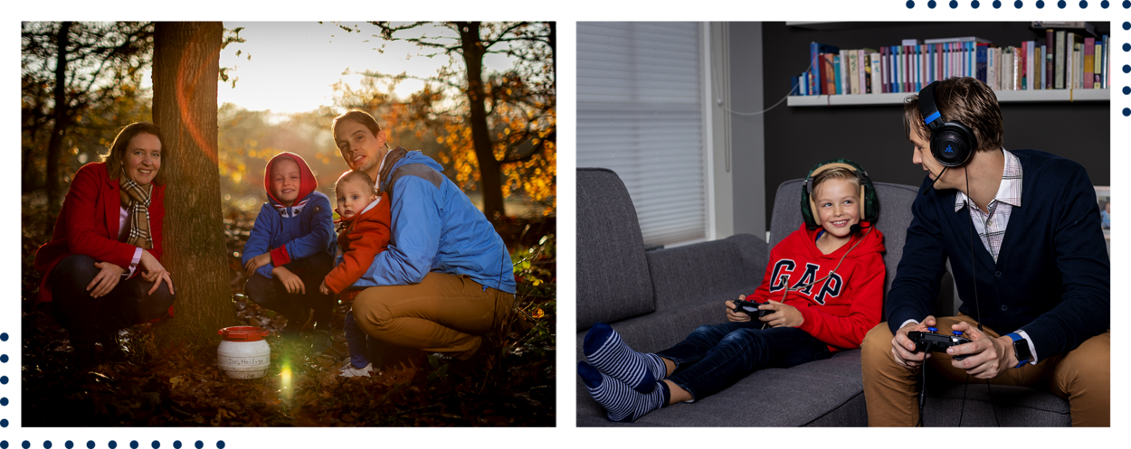 Thuisfront: echtgenote Elinoor, zoons Floris (9) en Thomas (1)