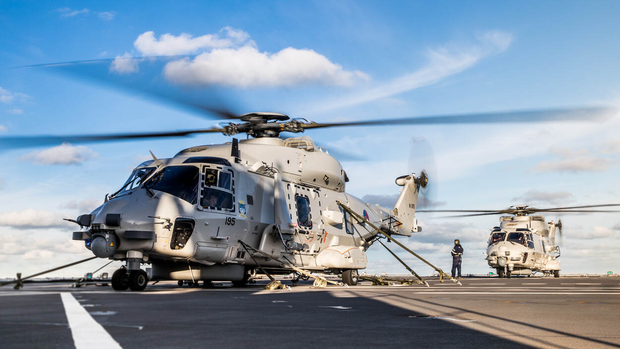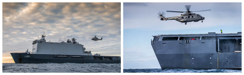 Voor het eerst opereren 3 NH90-crews vanaf een amfibisch transportschip. Zr.Ms. Johan de Witt vormt het basisstation voor de bemanningen die voor de Britse zuidkust in het hoogste geweldspectrum oorlog voeren. Dat doen ze tijdens de 3-weekse oefening Fleet Operational Sea Training (FOST). Het is de laatste horde op weg naar de operationele gereedheid die de NAVO verlangt.