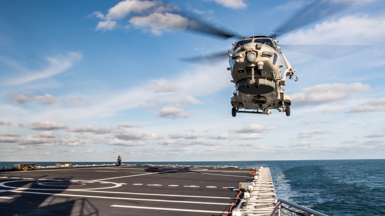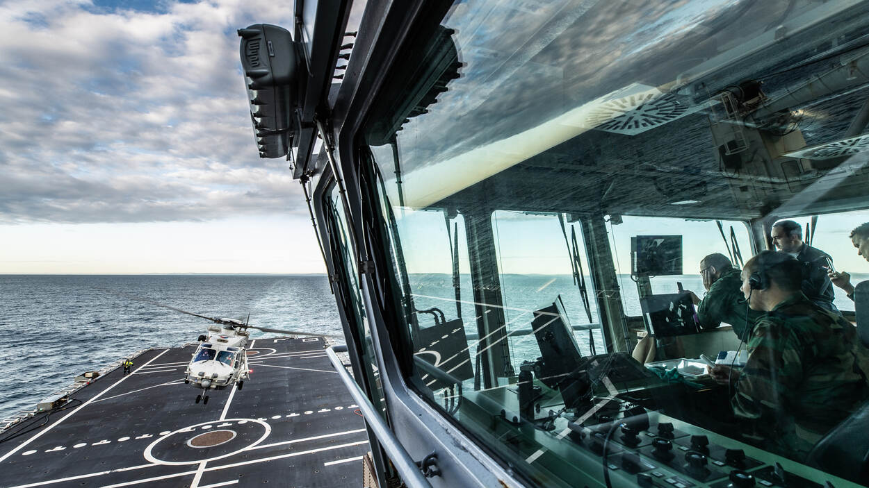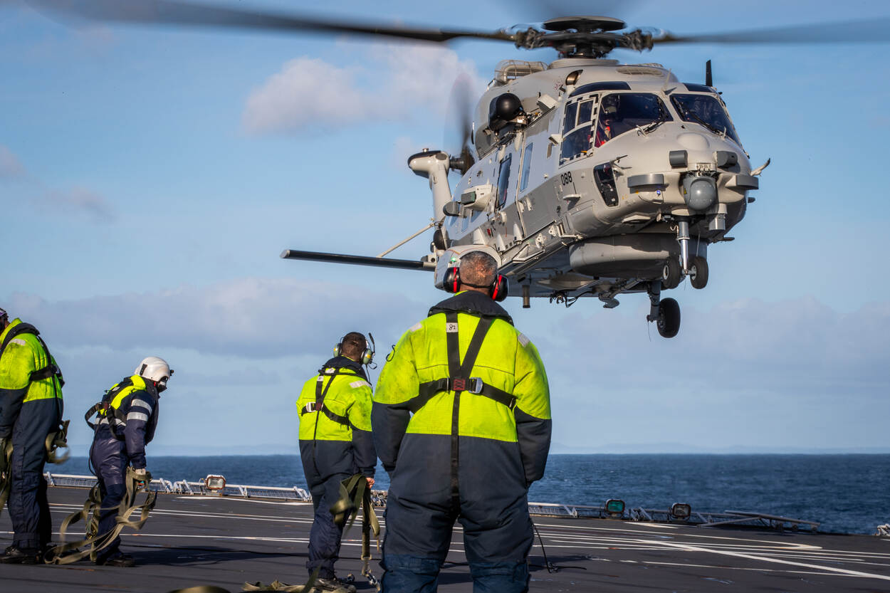 De NH90’s die jagen op de Nederlandse onderzeeboot Zr.Ms. Zeeleeuw doen dat samen met Zr.Ms. Johan de Witt en een Deens fregat. “In deze oefening werken we elk jaar samen met andere NAVO-landen. Een echte inzet moeten we immers met elke partner kunnen doen. Hoewel we allebei tot de NAVO en EU behoren, zijn procedures soms verschillend. Deze oefening verbetert onze samenwerking.”