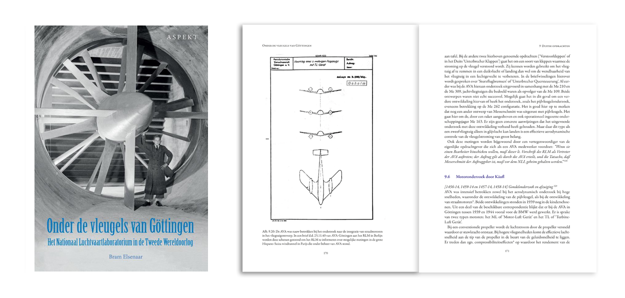 ‘Onder de vleugels van Göttingen - Het Nationaal Luchtvaartlaboratorium in de Tweede Wereldoorlog’ met ISBN 9789463389761 is geschreven door Bram Elsenaar en uitgegeven door Uitgeverij Aspekt B.V. in Soesterberg. De softback op formaat 17 x 24 cm telt 336 pagina’s en is voorzien van zo’n 15 kleuren- en 70 zwart-witfoto’s en -afbeeldingen. Het boek kost €24,95 en is verkrijgbaar bij iedere boekhandel in Nederland en via de site van de uitgever. Kijk daarvoor op www.uitgeverijaspekt.nl.