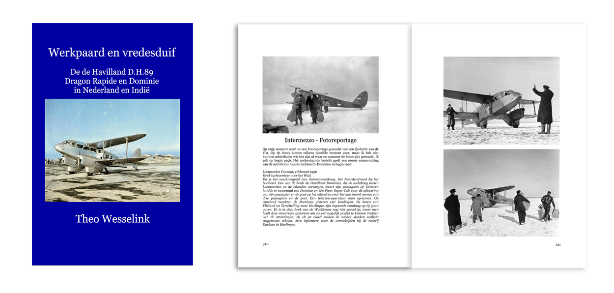 ‘Werkpaard en vredesduif – De de Havilland D.H.89 Dragon Rapide en Dominie in Nederland en Indië’ met ISBN 9789491993176 is geschreven door Theo Wesselink en uitgegeven in eigen beheer door Dutch Aviation Publications. De hardback op formaat 15 x 23 cm telt 434 pagina’s en is voorzien van 360 zwart-witfoto’s. Het boek kost €49,95 en is te koop bij de Flash Luchtvaartwinkel in Eindhoven en Aviation Megastore in Aalsmeerderbrug. Ook is het bestelbaar bij iedere boekhandel, via www.blurb.com of op Wesselinks website. Kijk daarvoor en voor meer informatie op www.dutchavia.nl.