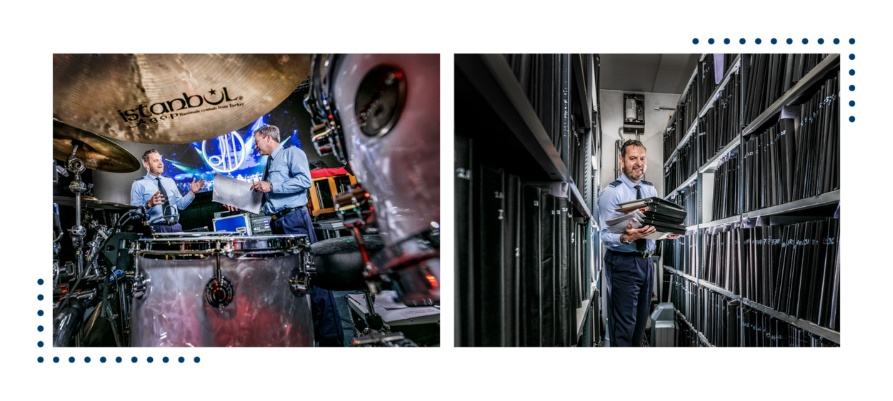 Zelf ben ik vooral creatief met ideeën voor nummers en hoe het er op het podium uit moet zien. Ik wil het orkest graag nóg moderner en vooruitstrevender maken. Als Protocol Officier was ik ook altijd bezig om de ceremonies nog meer van deze tijd te maken. Dan regelde ik een zanger en passende muziek en werd het allemaal wat hipper, maar toch passend bij de herdenking of viering. Dat ging niet altijd makkelijk, want ceremonies zijn vaak voorgebakken qua programma en wie waar staat.