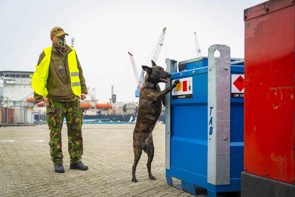 Het sweepen van een civiel gebied dat TMO wordt zoals een haventerrein, doen Hollandse herder Ipa en haar baasje sergeant 1 Pim vaker. “Binnen Defensie zijn de explosievenspeurhonden van de luchtmacht daarvoor de aangewezen club”, geeft hij aan. Zo’n preventieve zoekactie naar (geïmproviseerde) explosieven gebeurt altijd onder begeleiding van politie of marechaussee. “Dat anderen ook op het terrein bezig zijn, maakt voor honden niet uit”, zegt Pim. “Die doen gewoon hun eigen ding.”