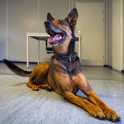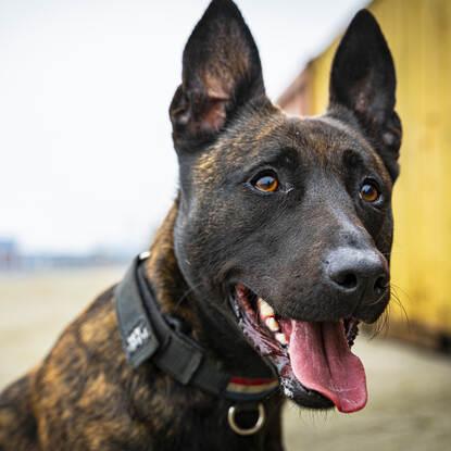 Barry’s speurhond Kyta is met 6,5 jaar al wat ouder. “Dat is een redelijke leeftijd. Meestal blijven ze in dienst tot rond de acht jaar, maar dat verschilt uiteraard per hond.” Opleiden van de dieren begint al in het eerste levensjaar en duurt zo’n 28 tot 38 weken. “Maar met alle praktijkervaring ben je anderhalf jaar verder”, zegt Barry. “Vergelijk het met een rijbewijs. Met het roze kaartje net op zak weet je hoe je moet rijden, maar je leert het pas echt door het dagelijks te doen.”