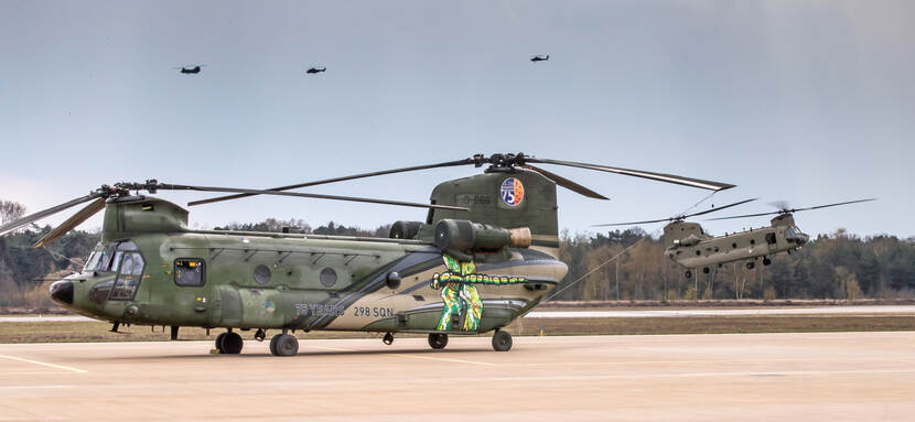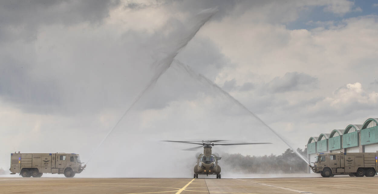 Nog net op tijd om binnen het jubileumjaar van het 298 Squadron te vallen, arriveerde op 14 april de eerste nieuwe Chinook officieel op Gilze-Rijen. Zelfde vorm, nieuwe kleur, maar vooral inwendig een compleet andere CH-47 dan de versie die al 25 jaar bij het squadron vliegt. Een stap naar de 5e Generatie Luchtmacht voor het Defensie Helikopter Commando (DHC).