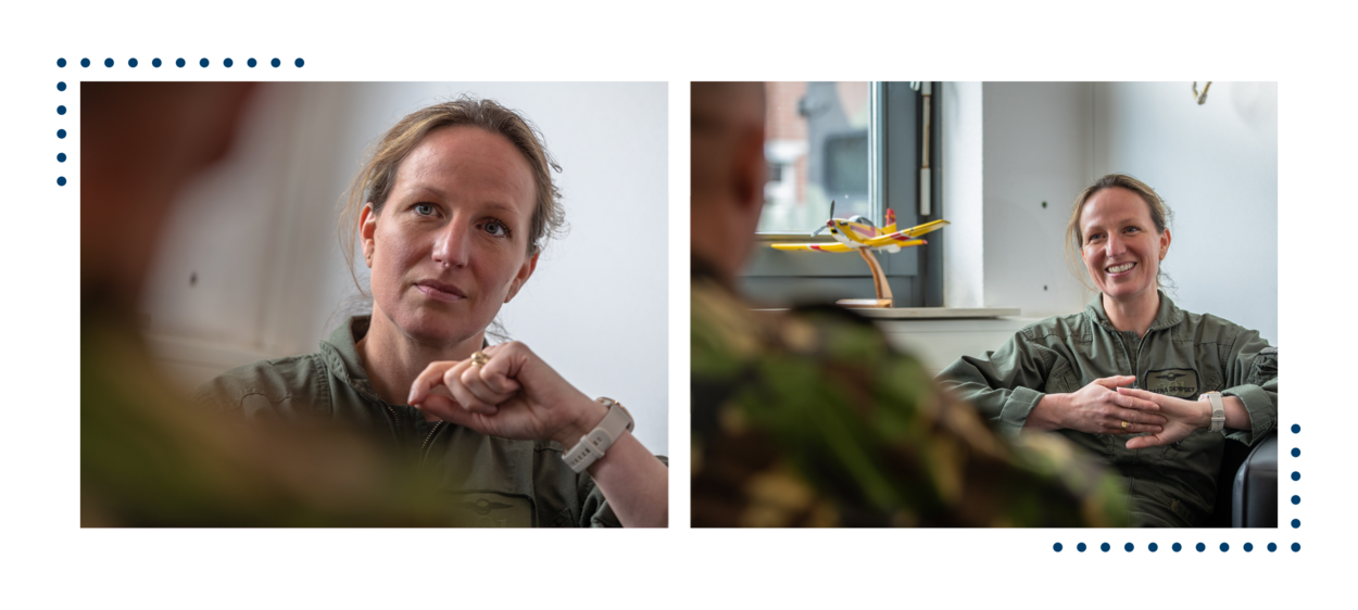 “Personeel is een uitdaging, en niet alleen de tekorten. Toen ik begon had ik honderdvijftig man personeel, nu honderdtachtig. Ik zeg man en dat is het bijna ook. Bij mijn start was ik de tweede vrouw in het squadron. We zitten nu pas op vijf. Dat is geen realistische verhouding. Ik zou dat graag zien veranderen. Tekorten zijn er, vooral bij het vliegoperaties-ondersteunend personeel; daar hebben we maar vijftig procent bezetting. Ook ervaren wapeninstructeurs heb ik te weinig, meer zijn er – nu – gewoon niet.