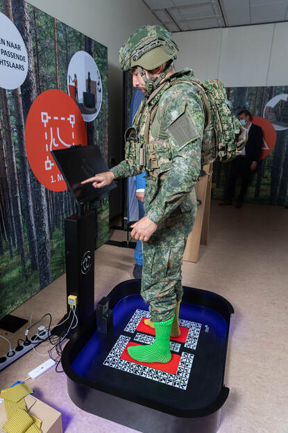 Specialisten maken met moderne apparatuur een 3D-scan van de voeten. Delfgou: “Ook kijken ze naar de stand van de benen, in hoeverre enkels naar binnen of buiten wijken, waar de drukpunten zitten, enzovoorts. Dat leidt tot een laarsadvies.” Daarna is het tijd om te passen. Door over een loopprofiel met ongelijke stenen en balkjes te wandelen, krijgt iemand een gevoel bij de schoen. “Militairen krijgen professioneel advies, maar kiezen uiteindelijk zelf een merk.”