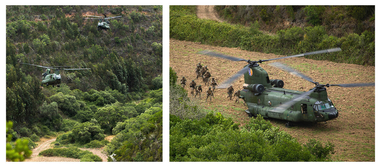 Portugal biedt mogelijkheden en ruimte die er in het overvolle Nederland niet zijn: een open terrein dat lijkt op een toekomstig inzetgebied, waar veel kan en mag. “Zo hebben we veel geluidsexport gerealiseerd: 75 uur voor de Cougar en 150 uur voor de Chinook”, benadrukt Van Lankveld.