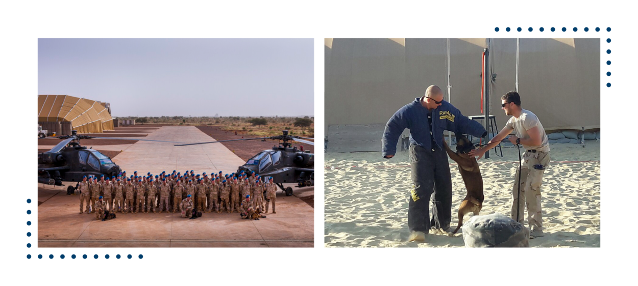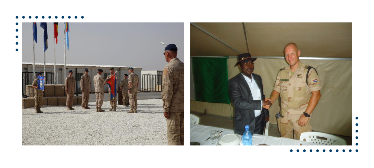 Ik voel me snel ergens thuis, als ik maar mensen die er iets van willen maken om me heen heb. Als beginnend luitenant bij het 641 OGRV-peloton wilde ik ook graag bij mijn mensen zijn. Dat zit nu eenmaal in me. Ik ben met die club twee keer in Afghanistan en één keer ruim drie maanden in Kirgizië geweest. Ook hebben we de redeployment van de Apaches uit Irak in Koeweit begeleid. Echt een enorm mooie en leerzame tijd. Daarna volgde nog een paar uitzendingen, zoals Mali en ook als SNR (Senior National Representative, red.) naar Jordanië. Die laatste was voor mij niet alleen bijzonder qua taak, duur en samenstelling, maar vooral omdat ik nu thuis een kleine heb. Dat maakt een heleboel uit, merkte ik daar.”