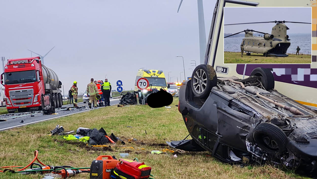 Tijdens eens testvlucht met de nieuwe Chinook CAAS ziet de bemanning een ravage op de Rijksweg. “De bewolking zorgde voor slecht zicht, daarom vlogen we wat lager toen we over de dijk heen kwamen”, vertelt Thijs. “We zagen een vrachtwagen en twee personenauto’s, omgeven door brokstukken. Het ongeluk was echt net gebeurd. Er waren nog geen hulpdiensten. We wisten niet óf we iets konden doen, maar we wilden helpen. Doorvliegen was voor geen van ons een optie.”
