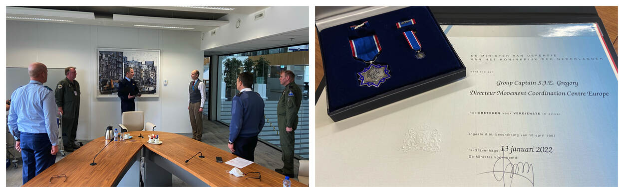 De directeur van het Movement Coordination Centre Europe (MCCE), Group Captain Stuart Gregory, ontving op 8 februari het Ereteken voor Verdienste (EvV) in Zilver. Commandant Luchtstrijdkrachten (C-LSK) luitenant-generaal Dennis Luyt reikte de onderscheiding aan de Britse collega uit op Vliegbasis Eindhoven.