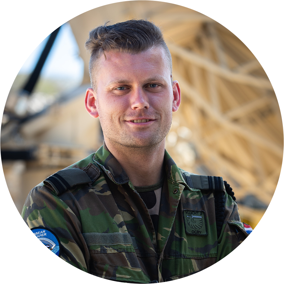 “Ik wilde altijd al graag bij Defensie, maar wist niet waar. Na de havo deed ik hbo-watermanagement. Ik liep een half jaar stage op Aruba bij de dienst openbare werken. Later studeerde ik af bij de Veiligheidsregio Zuid-Holland Zuid. Daar werd mijn interesse voor Defensie aangewakkerd. Ik ontmoette er de officier veiligheidsregio, waarmee ik veel sprak. Toen wist ik zeker: ik wil bij Defensie.