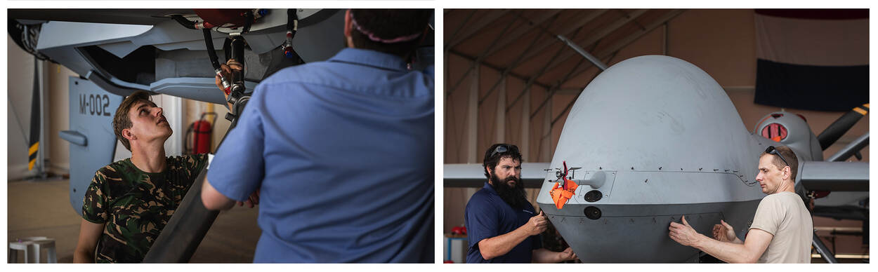 De modus operandi gaat waarschijnlijk gedurende het jaar nog veranderen. “Als de infrastructuur qua gebouwen en netwerken op Leeuwarden gereed is, en de twee Ground Control Stations daar zijn aangekomen en operationeel zijn, gaan we de missies vanaf Leeuwarden vliegen”, aldus Roddenhof. Hij verwacht dat het in de tweede helft van dit jaar zover is. Dan zijn nog ruim dertig collega’s nodig in het inzetgebied. Het merendeel van de vliegers en sensoroperators opereert dan vanuit Nederland. De vliegcrew op locatie verzorgt alleen het opstijgen en landen. Waarschijnlijk zal de Amerikaanse leverancier GA-ASI (General Atomics Aeronautical Systems, Inc.; red.) een belangrijk deel van deze shifts op zich nemen. “Voorlopig blijven we nog even hybride werken met de Amerikanen. Ook voor wat betreft de technische kant. In ieder geval tot we op eigen benen kunnen staan qua certificering en capaciteit. In 2025 nemen we een besluit of we de samenwerking in stand willen houden.”