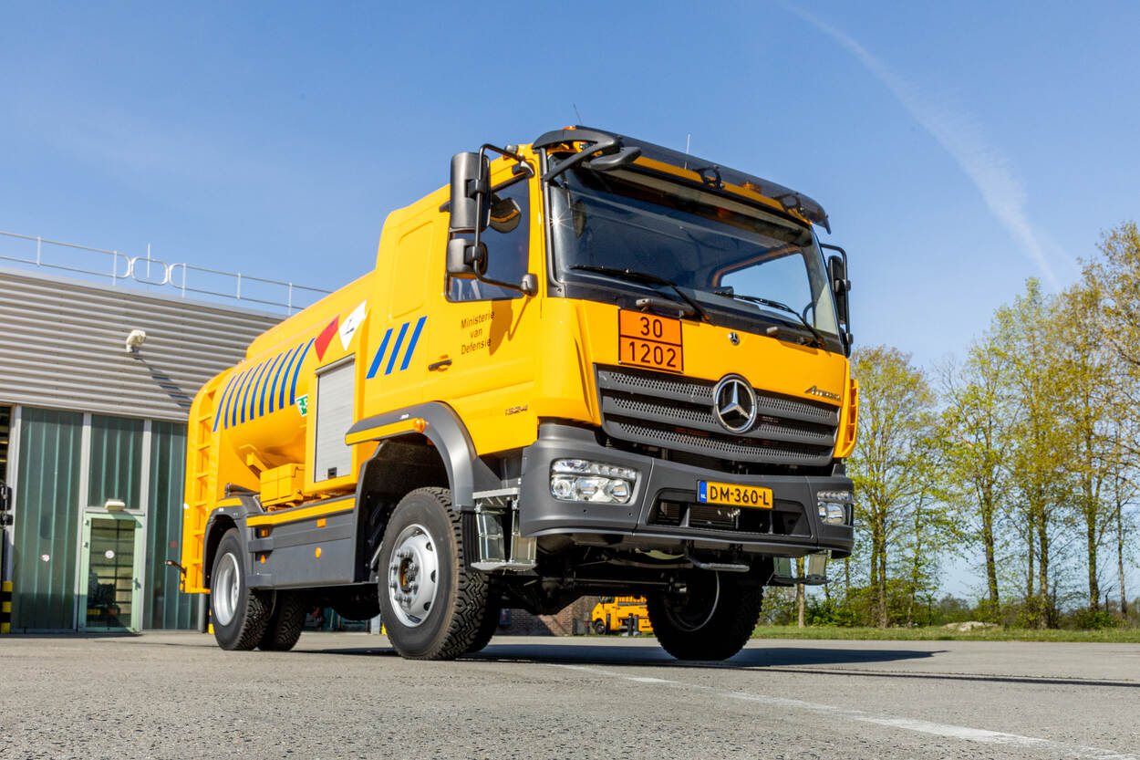 Vaak opereren ze uit het zicht, in de schaduw van de vliegoperaties. Maar dat maakt de acht pas aangeschafte Atego ‘4.000-liter’ diesel-distributievoertuigen niet minder belangrijk. Op de velden tanken ze de aggregaten en compressors bij. Een gewichtige taak, want zonder licht en lucht kun je vliegen wel vergeten.