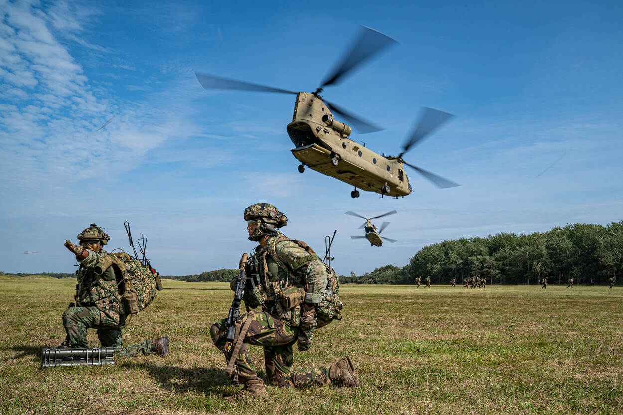 Chinooks en luchtmobiele troepen lijken een vaste combinatie, maar het is al even geleden dat een compleet bataljon met de toestellen van het Defensie Helikoptercommando (DHC) trainde. “De afgelopen jaren was dat beperkt tot compagnieniveau”, vertelt Van der Linde. “We zetten nu als substantieel meer mensen in met herstel-, bevoorradings- en geneeskundige troepen.”