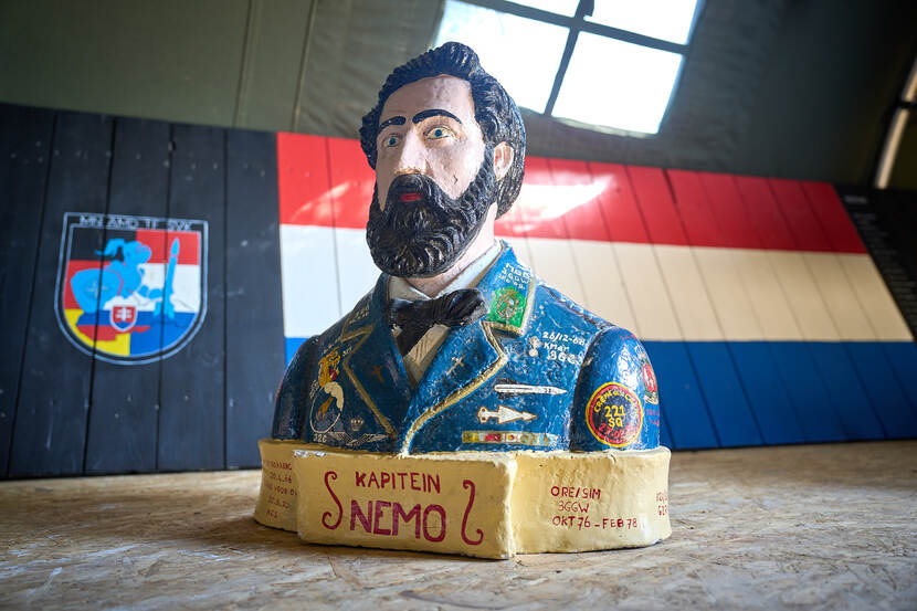 Dit is niet zomaar een gipsen buste. Dit is Kapitein Nemo. Een wisseltrofee die wordt uitgewisseld tussen Duitse en Nederlandse luchtverdedigingseenheden bij gezamenlijke oefeningen en wedstrijden. Het statige heerschap pendelt al sinds de jaren zestig heen en weer. Corona maakte dat binationale oefeningen de afgelopen jaren lastig te organiseren waren. Daarom verbleef Nemo al drie jaar bij de Flugabwehrraketengruppe 26 in het Duitse Husum. In Slowakije werd Nemo weer overhandigd aan het Nederlandse 802 Patriot Squadron.
