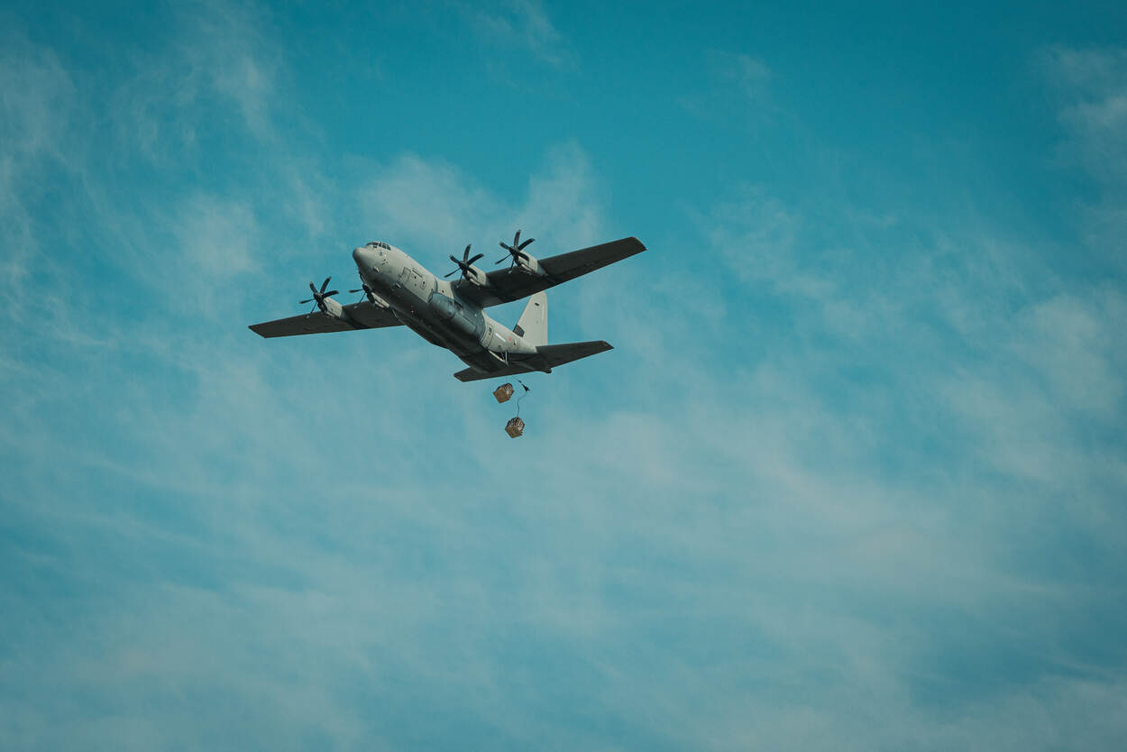Zo’n duizend militairen uit dertien landen namen deze maand deel aan de internationale oefening Falcon Leap. Vanaf Vliegbasis Eindhoven vlogen bijna twee weken lang Nederlandse C-130’s en vliegtuigen en helikopters van internationale partners naar oefengebieden boven Nederland en België. Daar dropten ze de eerste week ladingen en in de tweede week parachutisten.