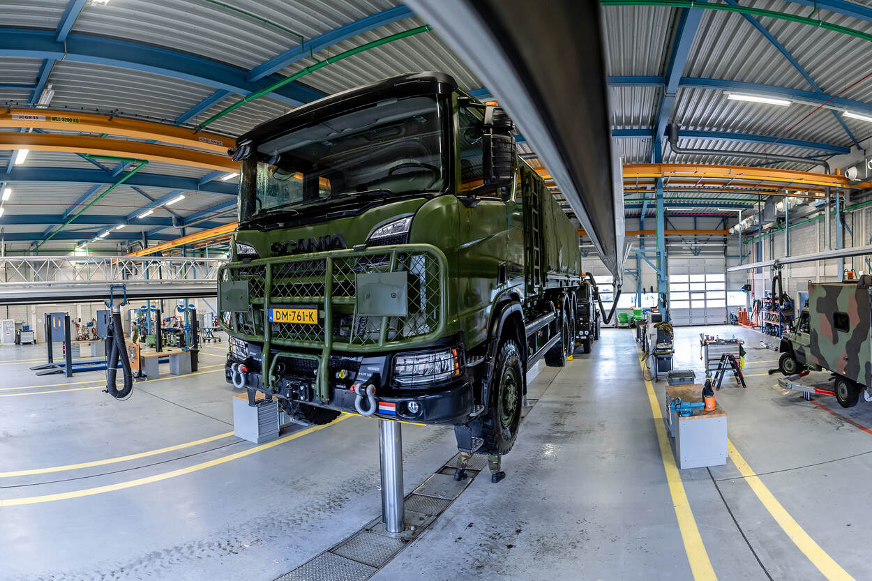 De luchtmacht neemt slechts tien procent in gebruik van de drieduizend nieuwe vrachtwagens die Defensie krijgsmachtbreed koopt. Het overgrote deel is bestemd voor de landmacht. Maar omdat Vliegbasis Gilze-Rijen al de modernste onderhoudswerkplaats heeft, wordt die als eerste omgebouwd naar de strenge normen van Scania. Het is een keuze van de projectorganisatie die onder leiding staat van de landmacht. De luchtmachttechneuten kun je op dat moment niet blijer maken.