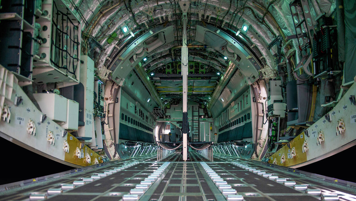 Peer heeft zelf een aantal jaar op de C-17 gevlogen en kent het toestel op zijn duimpje. “Als je achterin de C-390 staat, is het net een C-17 alleen de helft kleiner, met maar één gangpad. Bij de ontwikkeling hebben ze heel goed naar Amerikaanse standaarden gekeken. De boekwerken zijn op Amerikaanse leest geschoeid en sluiten naadloos aan op de Amerikaanse doctrine. Dat hebben ze slim gedaan.”