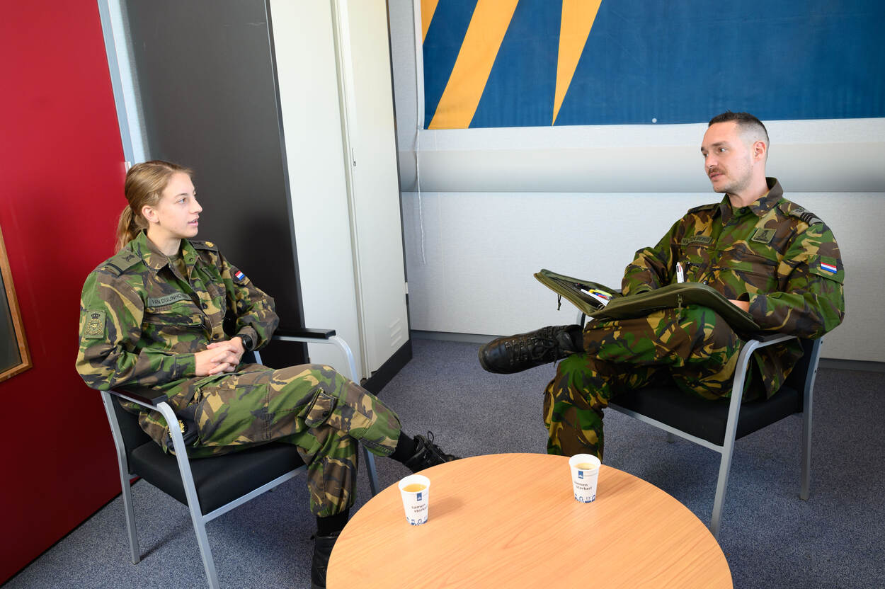 “Kijk, het kroontje op je schouder krijg je niet cadeau”, stelt Van Nimwegen. “Iedereen kan in principe instructeur worden, maar het is geen kwestie van achteroverleunen. Soms valt dat tegen. Je wordt eerst aangesteld als junior-instructeur, dit zijn sergeanten. Via het Expertise Centrum Opleidingskunde Defensie (ECOD) werk je aan je opleidingskwalificatie. Je staat dan ook al voor de klas en geeft lessen, zoals militaire basisvaardigheden. Dat gebeurt onder begeleiding van een senior-instructeur; een sergeant-majoor. Gemiddeld duurt het halen van de ECOD-kwalificatie driekwart jaar. Daarna kan je doorgroeien naar senior-instructeur en ga je je naast het lesgeven nog meer bezighouden met het coachen en begeleiden.”