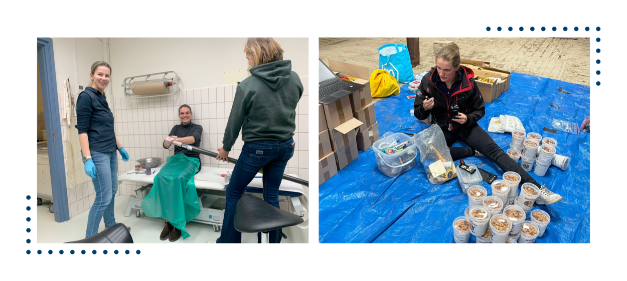 We willen continu twee roeiposities bemannen. Er wordt dus 24/7 geroeid. Als het ene duo roeit, rust het andere. In die tijd kan je jezelf verzorgen en slapen. En er moet gegeten worden: 6.500 kilocalorieën per dag moet ik naar binnen zien te krijgen. Ik neem vriesdroogmaaltijden mee en verder ga ik vooral heel veel snacken: M&M’s, winegums, nootjes; je moet het wel leuk houden voor jezelf.”