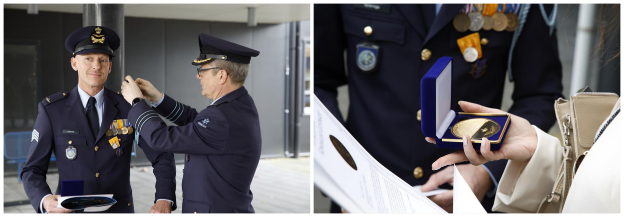 Sergeant-majoor Imre Spierings heeft de erepenning en het erekoord van de Koninklijke Luchtmacht ontvangen voor levensreddende hulp tijdens een dienstreis op Curaçao.
