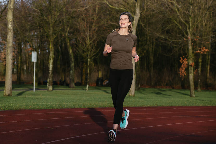 Sportervaring vooraf: “Sinds mijn zwangerschap in 2020 heb ik weinig meer gesport. Ik moest dus alles weer opbouwen. Mijn fysieke fitheid was nogal een contrast met zo’n zeven jaar geleden toen ik zes keer per week fitneste en ook nog op mijn racefiets reed.”
