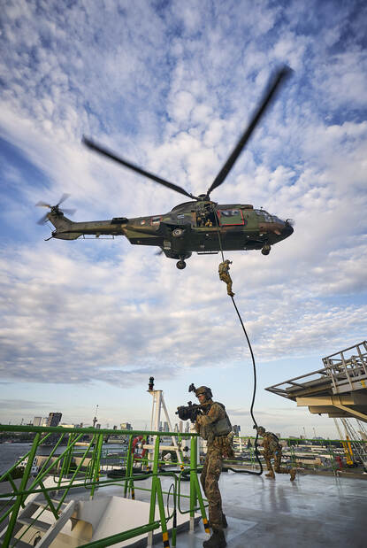 “Dat is niet alleen air assault. Het gaat om het hele spectrum van samenwerken van luchtmiddelen met lichte infanterie en gezamenlijk effecten brengen. De ene keer is de grondmacht het zwaartepunt, in andere missies (air manoeuvre) ligt de nadruk op het uitbrengen van (non)-kinetische effecten met de wapensystemen van de luchtmacht.”