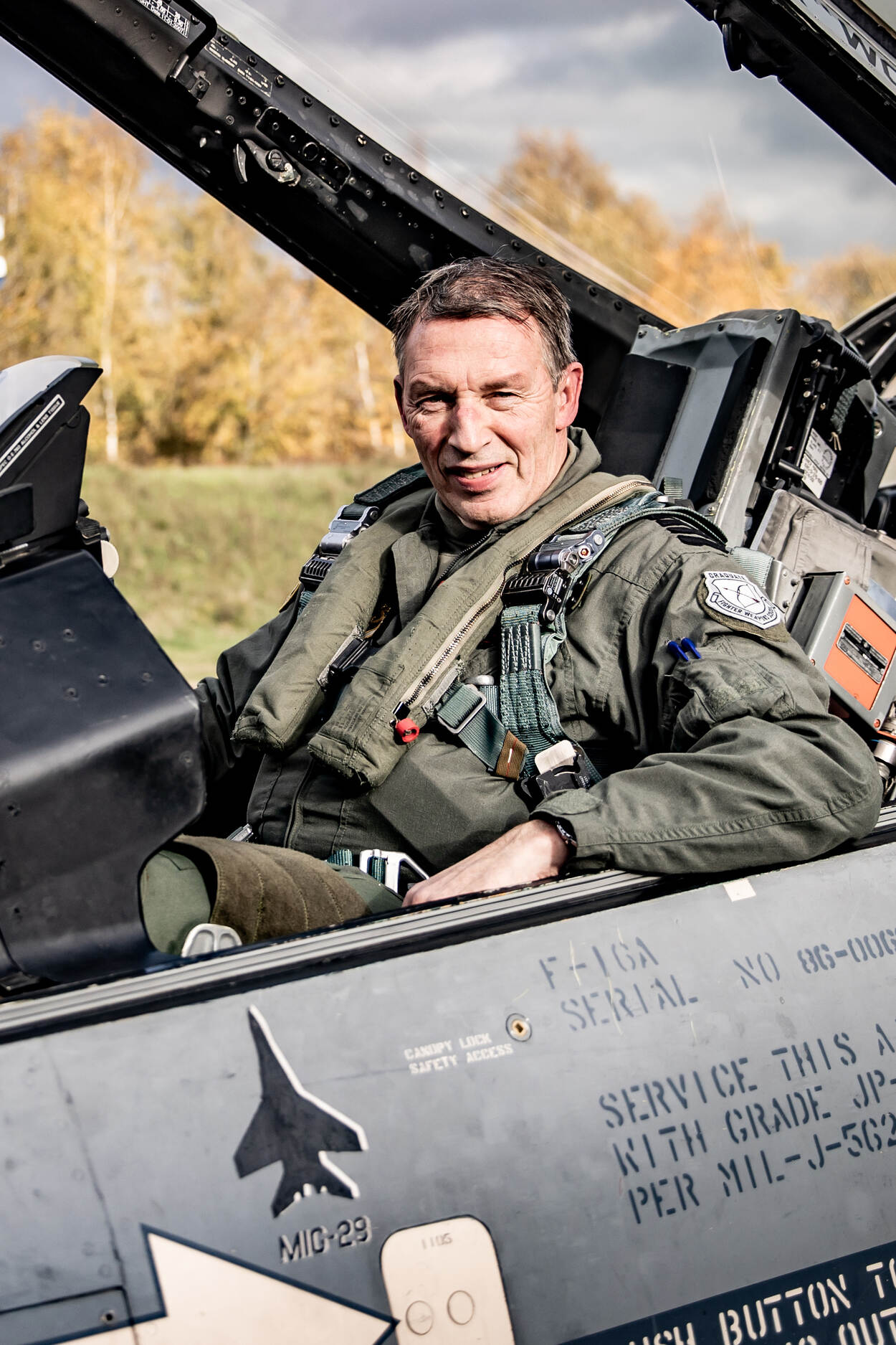 Eerder op de dag werden op de voormalige Vliegbasis Soesterberg traditioneel de gevallenen van de luchtmacht herdacht. Commandant Luchtstrijdkrachten luitenant-generaal André Steur legde hier een krans, samen met Luchtmachtadjudant Terry Venhovens. Na afsluiting zorgden vier F-35’s van Vliegbasis Volkel voor de missing man-formatie (foto rechts). Foto: korporaal Gregori Fréni