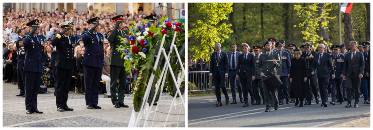 Nederlandse slachtoffers van de Tweede Wereldoorlog, van de koloniale oorlog in Indonesië en van latere oorlogssituaties en vredesmissies zijn op 4 mei op vele plekken in Nederland en daarbuiten herdacht. Dat gebeurde onder andere tijdens de Nationale Herdenking op de Dam in Amsterdam. Daar werden kransen gelegd door onder anderen Commandant der Strijdkrachten generaal Onno Eichelsheim en zijn operationele commandanten. Onder hen C-LSK luitenant-generaal André Steur. Zij plaatsten een krans namens de gehele krijgsmacht (foto links). Foto: Paul Tolenaar
