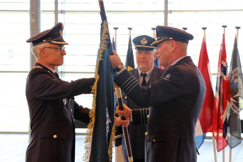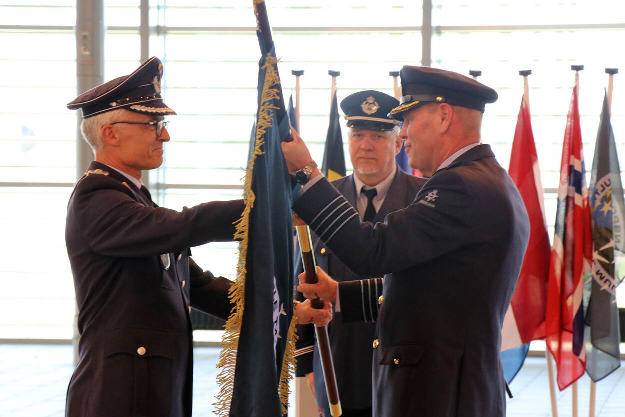 Op Vliegbasis Eindhoven droeg kolonel Jurgen van der Biezen op 5 april het commando over de Multi-National MRTT Unit over aan zijn Duitse opvolger kolonel Ludger Bette. Van der Biezen gaat met functioneel leeftijdsontslag. Hij leidde de MMU vanaf de oprichting en was daarvoor een van de drijvende krachten van de projectorganisatie. Foto: MMU