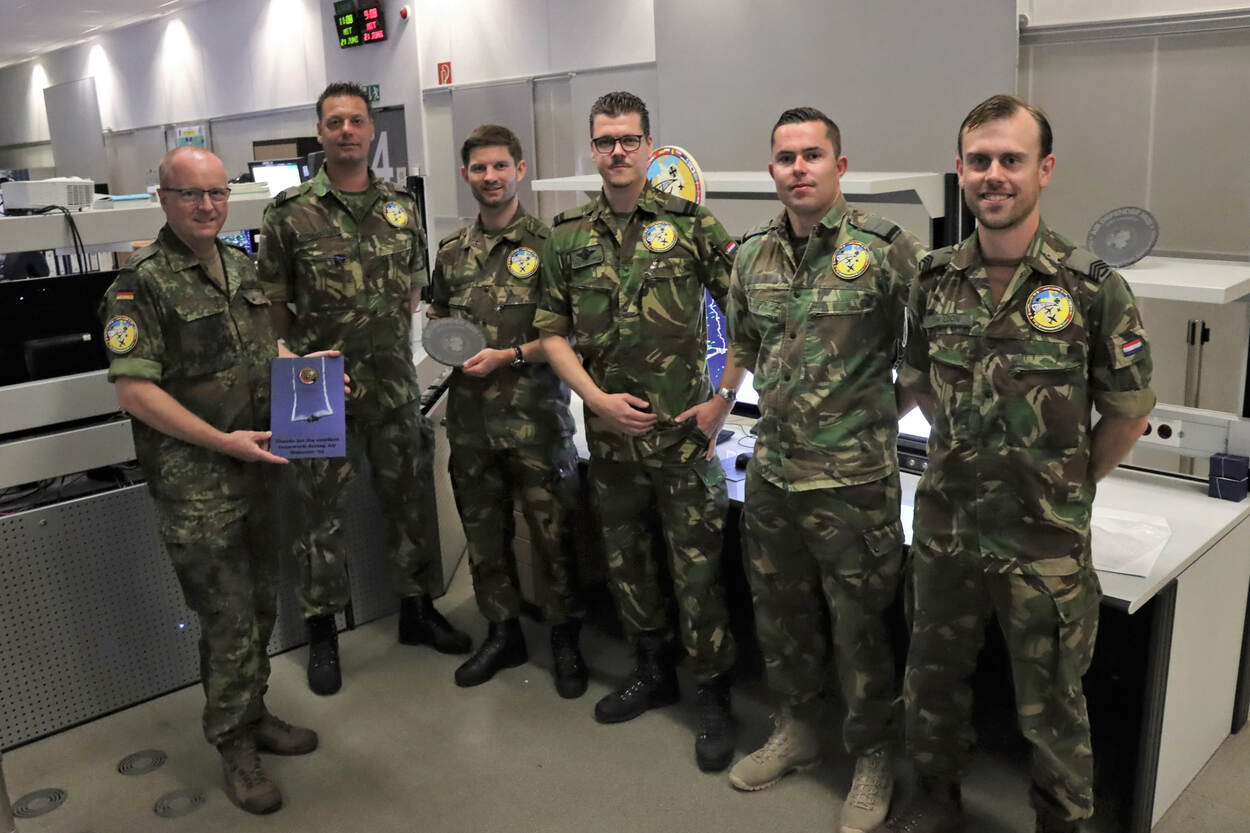 De AOCS Nieuw Milligen-delegatie in het Duitse gevechtsleidingcentrum Loneship in Erndtebrück, zo’n tachtig kilometer ten oosten van Keulen, waar zo’n vijfhonderd man werken. Foto: Bundeswehr