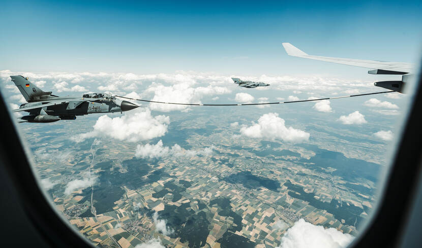 Kerosine is in een oefening als Air Defender cruciaal. Is het op, dan wordt de rol van A330 Multirole Tank- en Transporttoestellen (MRTT’s) belangrijk. Deze vliegtuigen van de MMU voorzien de jagers in de lucht van de benodigde brandstof. “Alle jachtvliegtuigen moeten min of meer tegelijk volgetankt zijn zodat ze met maximale brandstofvoorraad aan de aanval beginnen. Dat goed afstemmen met alle spelers is een complexe dans: tien minuten later vertrekken betekent bijvoorbeeld dat receivers al terug naar huis moeten omdat ze brandstoftekort hebben.”