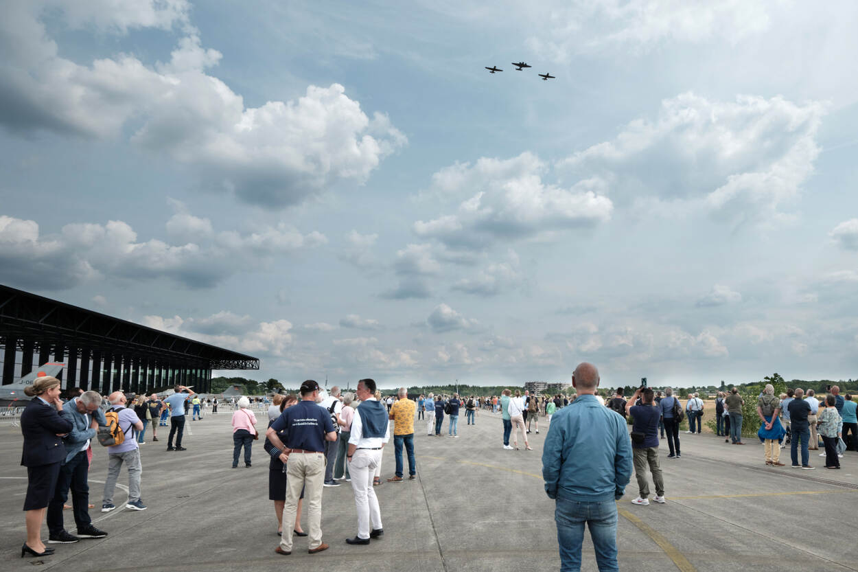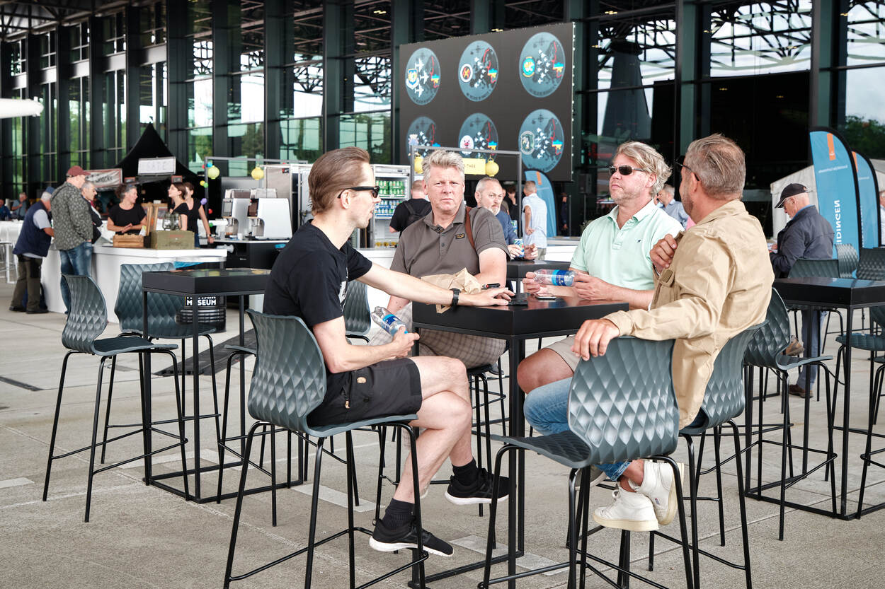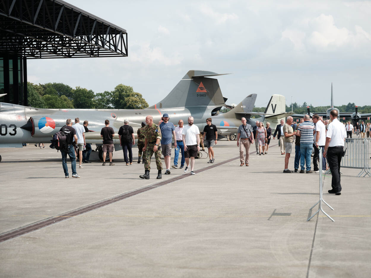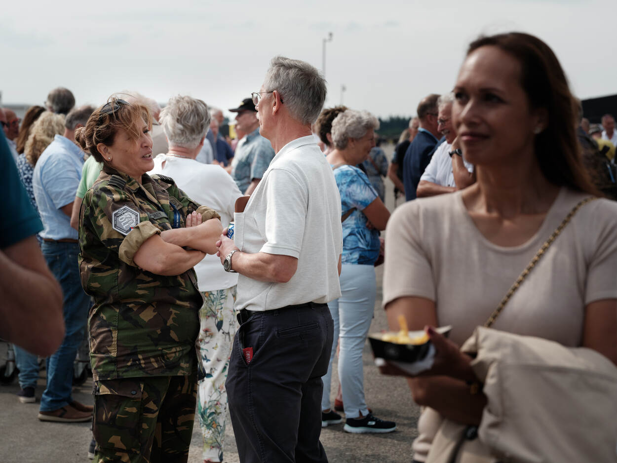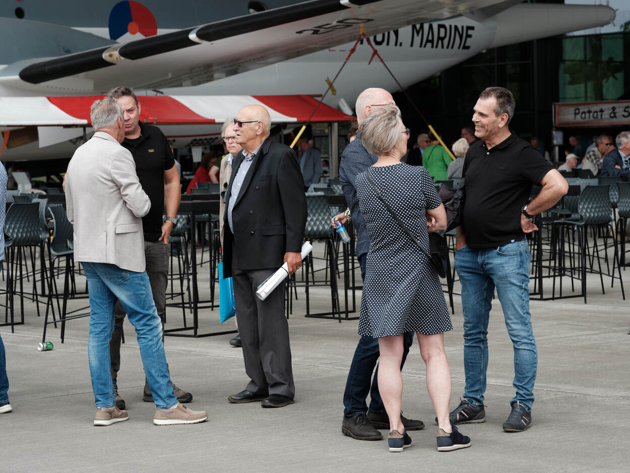 ‘s Middags is het tijd om te vieren, waarvoor een paar duizend (oud-)luchtmachters en leden van de KNVOL naar het terrein van het Nationaal Militair Museum komen.