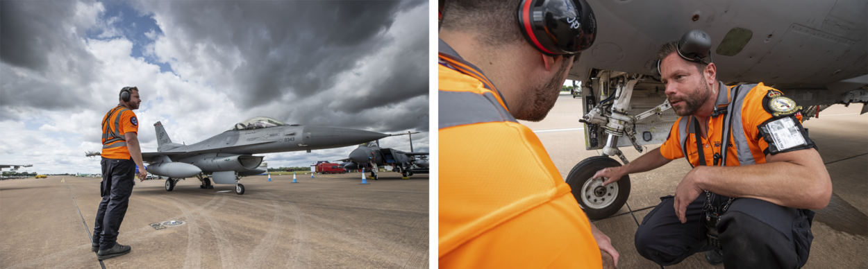 Elk jaar trappelen ze de stenen uit de stoep om te gáán. Jan en Martijn zijn vrijwilliger op de Royal International Air Tattoo (RIAT), de grootste militaire air show ter wereld die gehouden wordt op de Britse vliegbasis RAF Fairford. Jan tankt vliegtuigen, Martijn is teamleider aircraft handling. Jan werkt in het verleden als brandstofspecialist op Leeuwarden en is daarnaast in zijn vrije tijd amateurfotograaf. In 2017 gaat hij als professioneel beeldmaker aan de slag bij het in Den Haag gevestigde Mediacentrum Defensie (MCD). Martijn is nog steeds op Leeuwarden geplaatst, als F-35 Technician B.