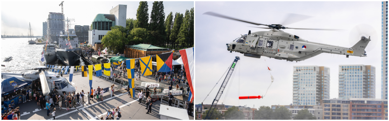 De 46ste editie van de Wereldhavendagen trokken in het eerste weekend van september zo’n 400.000 bezoekers. Zij zagen in de Rotterdamse haven tal van demonstraties van onder meer de Koninklijke Marine. Die was met meerdere schepen en vele activiteiten langs de kade in Rotterdam goed vertegenwoordigd. Ook de NH90 van 860 Squadron was aanwezig, zowel aan dek van het Luchtverdedigings- en Commandofregat Zr.Ms. De Ruyter en tijdens vliegdemonstraties boven de Nieuwe Maas. De luchtmacht verraste het publiek ook nog nog met een fly-by van vijf F-35’s. Foto’s: Louis Meulstee