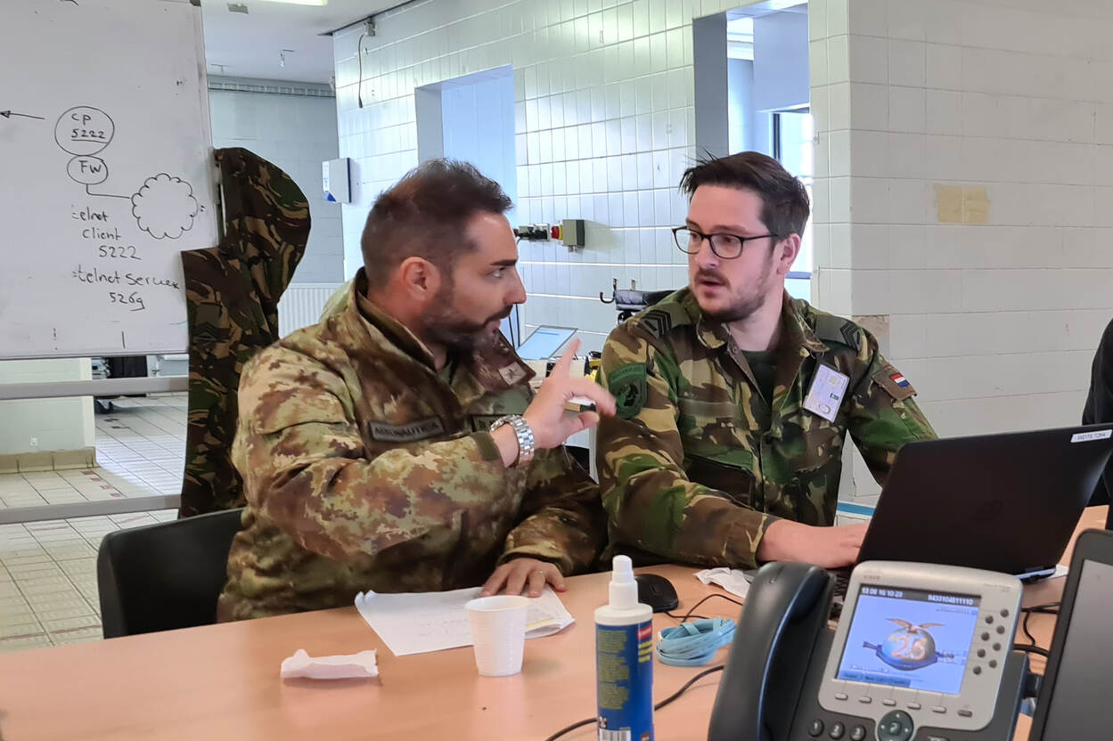 Het principe van deze jaarlijkse oefening is dat de deelnemers hun kennis en ervaring meenemen naar eigen land. Michel: “Onze CIS’ers doen twee keer mee: de eerste keer gaan ze als junior, de tweede als senior en dan is er dus ook weer een nieuwe junior bij. Zo geef je de kennis van de vorige editie door. “Handig, want je hoeft het wiel niet twee keer uit te vinden. “Vorig jaar hebben een beveiligde koppeling met de Italiaanse collega’s opgezet”, weet ‘senior’ sergeant-majoor Ronald. “Toen liepen we een paar keer stuk op enkele services. Dat hebben we kunnen oplossen en we wisten dus nu wat er anders moest. We hadden alles zo weer in de lucht. We doen dat land voor land, want dan kun je direct zien bij wie het probleem ligt. En dat zit soms in kleine dingen, hebben we ook nu weer gemerkt.”