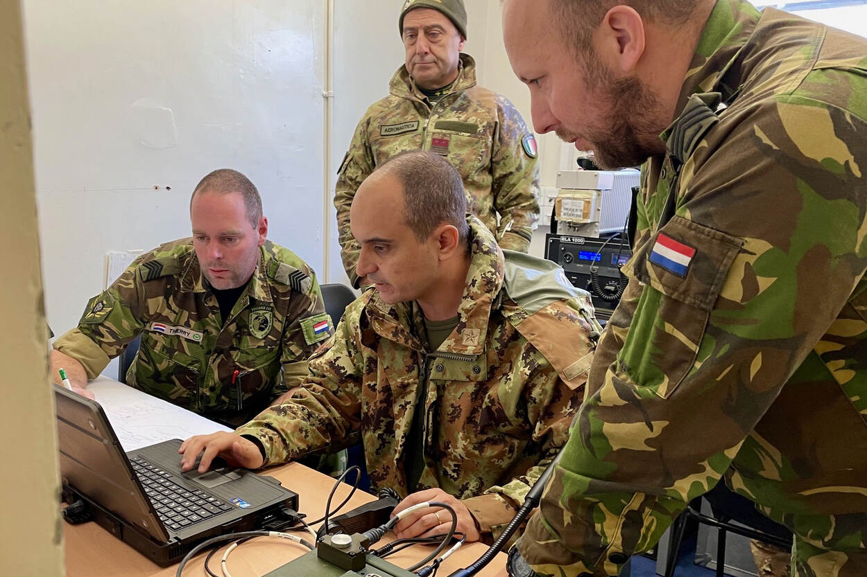 In een smalle gang op RAF Leeming weerkaatsen de muren opgewonden Italiaanse kreten, spannende Spaanse stemmen en heerst er een flinke bedrijvigheid onder Nederlandse specialisten op het gebied van communicatie- en informatiesystemen (CIS).